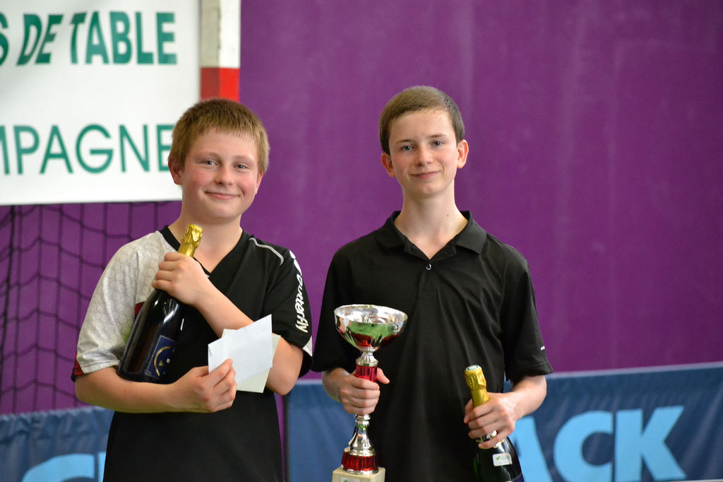 C'est à 200 km du Plessis, à Chalons en champagne, que Pierre et Ivan ont décidé de passer ce beau samedi de Pentecôte ! Ils n'ont pas fait le voyage pour rien puisque dans la fournaise d' un gymnase au climat tropical, ils ont une nouvelle fois vaillamment défendu les couleurs du TTPR en terminant : 1er du tableau max 799 points (Ivan), 1er du tableau max 1099 points (Pierre), 2ème du tableau max 1099 points (Ivan...contre Pierre en finale !) et 1/8 ème de finale du tableau max 1399 points (Pierre...11/9 au 5ème set contre un 15...dommage). Félicitations à tous les 2 pour leurs résultats et tous nos remerciements pour les bouteilles de champagne (c'est pas Paul qui dira le contraire !).